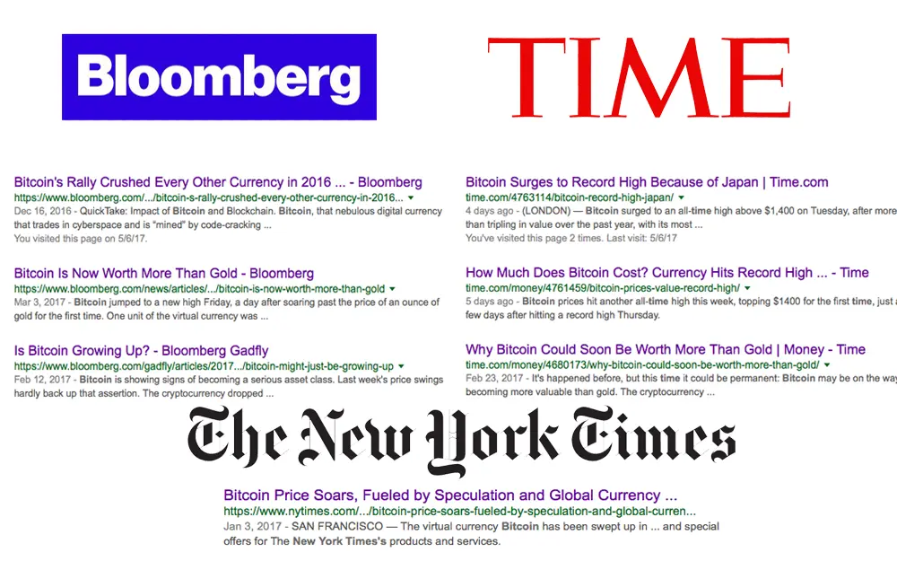 2017 年是比特币在散户中普及的周期。随着 2015 年以太坊推出,智能合约及其革命性潜力进入公众视野。以太坊价格在这一周期从 10 美元暴涨至 1400 美元。这一时期还以 ICO 狂热著称,数千个 ERC-20 代币推出,只要有白皮书的代币投资者就投钱。比特币也因大量新投资者涌入而价格爆涨,从 200 美元在两年半内飙升至 2 万美元。行业经常被主流媒体报道(见上图)。